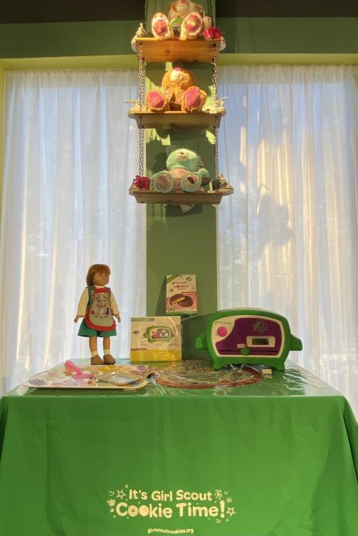 The Build-A-Bear Workshop bears were designed to accompany some of the current cookie varieties. These 'Cookie' bears have Girl Scout cookie designs on the bottom of their feet. Girls can stuff and dress their bears.