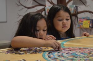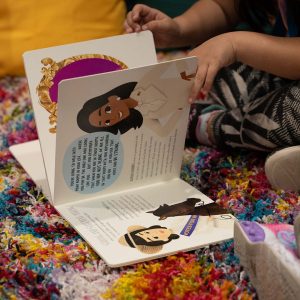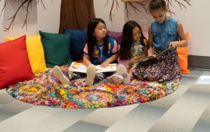 Set aside for kids of all ages, the Inspiration Room includes a book nook nestled under a tree along with various activities that introduce them to our rich cultural diversity.